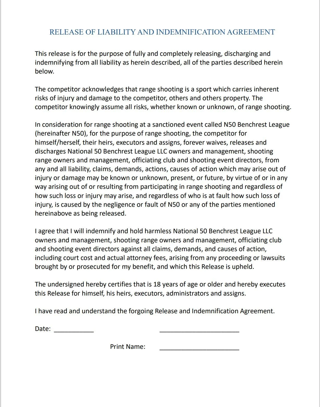 After filling information form above, download and complete and return the liability form. Select target quantity . Double check all the info is correct and email to n50benchrest@gmail.com. We will send you an invoice for payment.